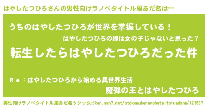 | 胡散臭い通販商品みたいなあだ名 | 『世界中を虜にした世界で10本だけ現存している希少なブランデー…その名も「はやしたつひろ」』 |
