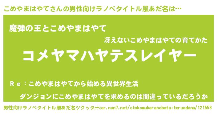 | ヒーロー風カッコイイあだ名 | 『仮面コメダー』『暗黒騎士コメ』 |