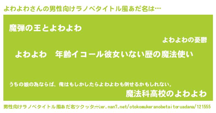 | ヒーロー風カッコイイあだ名 | 『仮面ヨワダー』『超時空戦士ヨワヨワ』 |