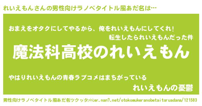 | 意味不明あだ名 | 『自称れいえもん』『ペロリンれいえもん』 |