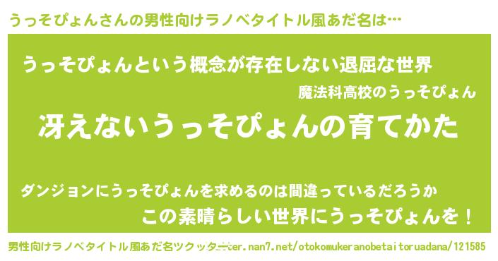 | 胡散臭い通販商品みたいなあだ名 | 『来世でも幸せになれる招き猫…その名も「うっそぴょん」』 |