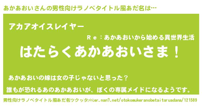 | 胡散臭い通販商品みたいなあだ名 | 『絶対に幸福をもたらす健康食品…その名も「あかあおい」』 |