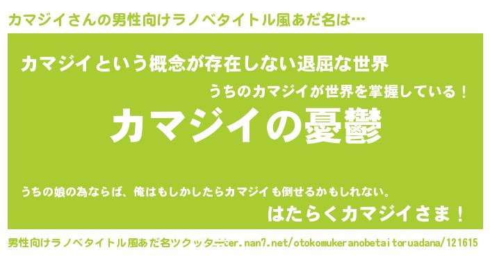 | 胡散臭い通販商品みたいなあだ名 | 『必ず成功する霊験あらたかなお札…その名も「カマジイ」』 |