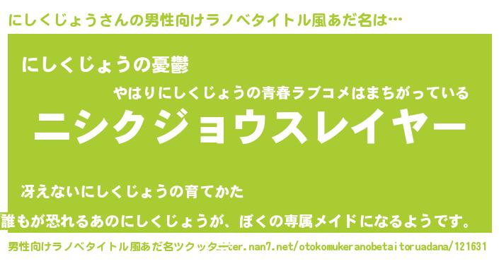 | 胡散臭い通販商品みたいなあだ名 | 『必ず成功するブレスレット…その名も「にしくじょう」』 |