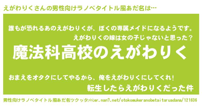| ヘコむあだ名 | 『えがわりく(震え声)』『えが太郎』 |