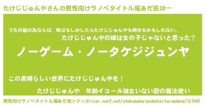 | 胡散臭い通販商品みたいなあだ名 | 『お金では代えられない隕石のかけら…その名も「たけじじゅんや」』 |