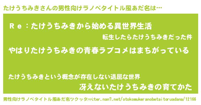 | 女子向けラノベタイトル風あだ名 | 『たけうちみきの雑貨屋さん』 |