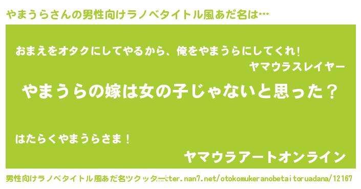 | ヒーロー風カッコイイあだ名 | 『天弓騎士ヤマ』『正義の使者やまうら』 |