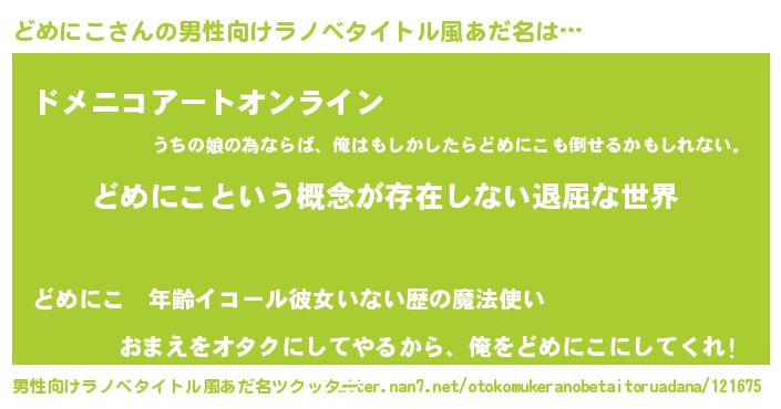 | 女子向けラノベタイトル風あだ名 | 『異世界で失敗しない100のどめにこ』 |