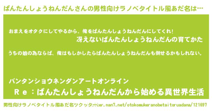 | 胡散臭い通販商品みたいなあだ名 | 『運命の人と巡り会える高級そうな絵画…その名も「ばんたんしょうねんだん」』 |