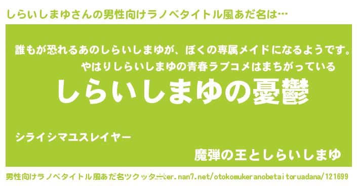 | 女子向けラノベタイトル風あだ名 | 『しらいしまゆ姫と円卓の騎士』 |