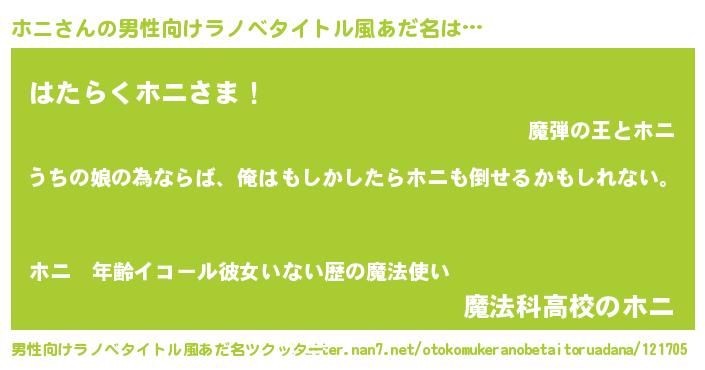 | ヒーロー風カッコイイあだ名 | 『ウルトラホニマン』『ウルトラ戦士ホニ』 |