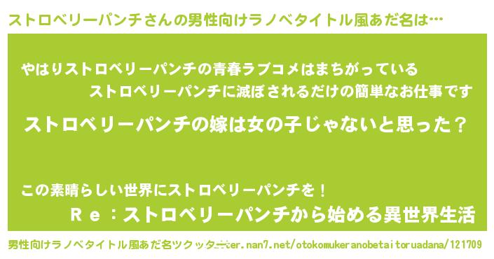| 女子向けラノベタイトル風あだ名 | 『ストロベリーパンチの卵を拾いまして』 |
