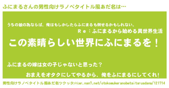 | 女子向けラノベタイトル風あだ名 | 『悪役ふにまるに転生したようですが、知った事ではありません』 |