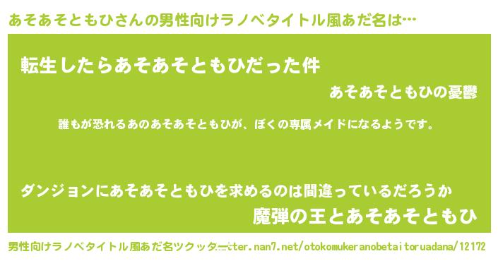 | 意味不明あだ名 | 『永久保存あそあそともひ』 |