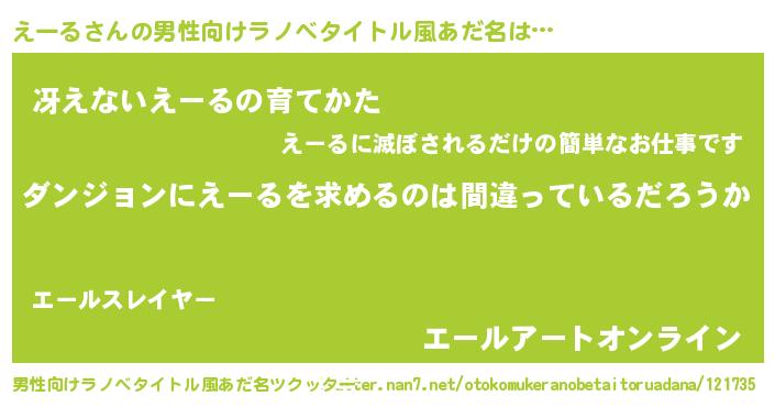 | 女子向けラノベタイトル風あだ名 | 『えーるは平凡を望む』 |