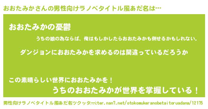 | 女子向けラノベタイトル風あだ名 | 『おおたみかは平凡を望む』 |