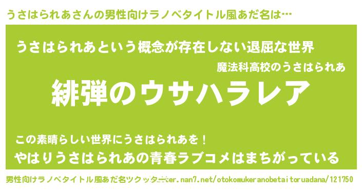 | 胡散臭い通販商品みたいなあだ名 | 『絶対に幸福をもたらす健康食品…その名も「うさはられあ」』 |