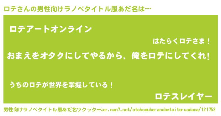 ロテさんの男性向けラノベタイトル風あだ名をツクッター!