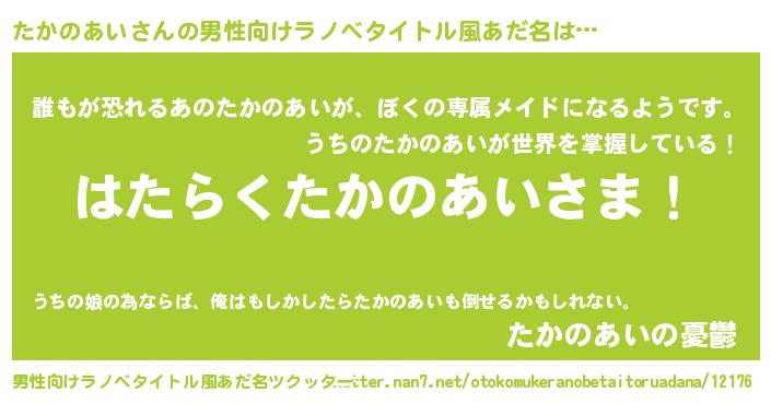 | ヘコむあだ名 | 『たかのあい(小並感)』『たかもー』 |