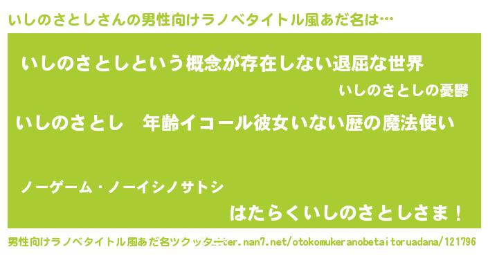 | 肩書あだ名 | 『いしのさとし中尉』『いしのさとし校長』 |
