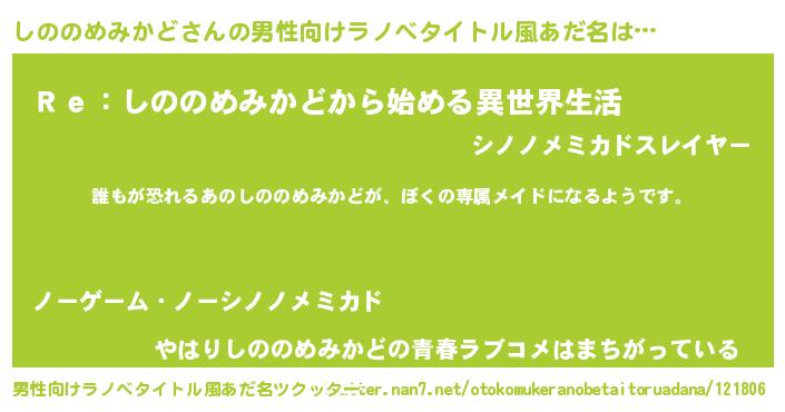 | 意味不明あだ名 | 『永久保存しののめみかど』 |