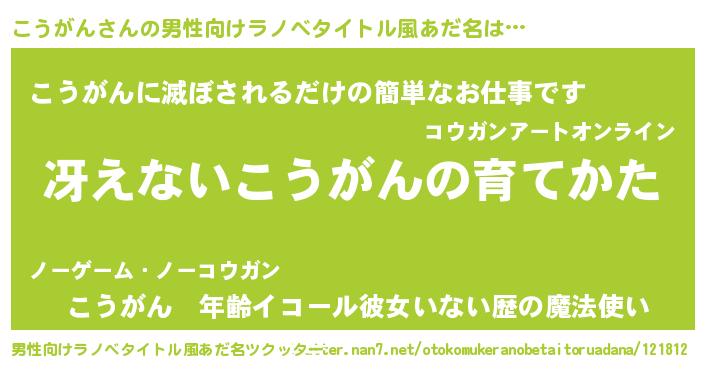| 女子向けラノベタイトル風あだ名 | 『シンデレラこうがん家の靴箱館』 |