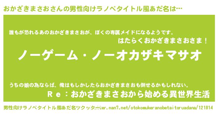 | ヘコむあだ名 | 『おかざきまさお(遠い目)』『酢こんぶ』 |