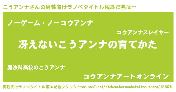 | 女子向けラノベタイトル風あだ名 | 『男装こうアンナの憂鬱な任務』 |