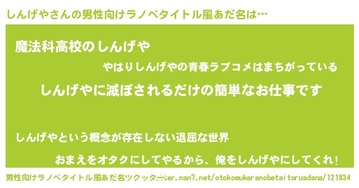 | ヒーロー風カッコイイあだ名 | 『究極戦士シンゲヤ』『愛の使者しんげや』 |