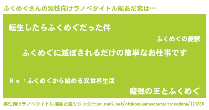 | ヘコむあだ名 | 『ふくにゅー』『豆乳』『ふくっ子』 |