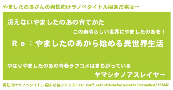 | 女子向けラノベタイトル風あだ名 | 『闇のやましたのあ』 |