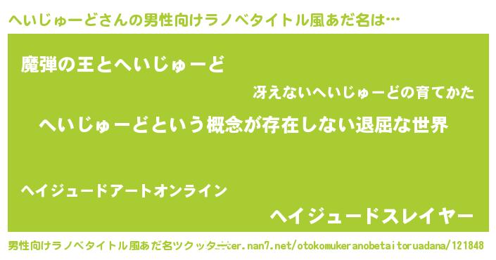 | 胡散臭い通販商品みたいなあだ名 | 『絶対に幸福をもたらす水素水…その名も「へいじゅーど」』 |