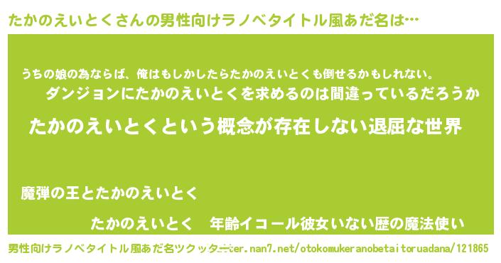 | 女子向けラノベタイトル風あだ名 | 『たかのえいとくの契約王妃』 |