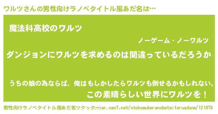 | 胡散臭い通販商品みたいなあだ名 | 『信頼と実績のサプリメント…その名も「ワルツ」』 |