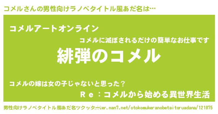 | ヒーロー風カッコイイあだ名 | 『スーパーコメル』『最強戦士コメル』 |