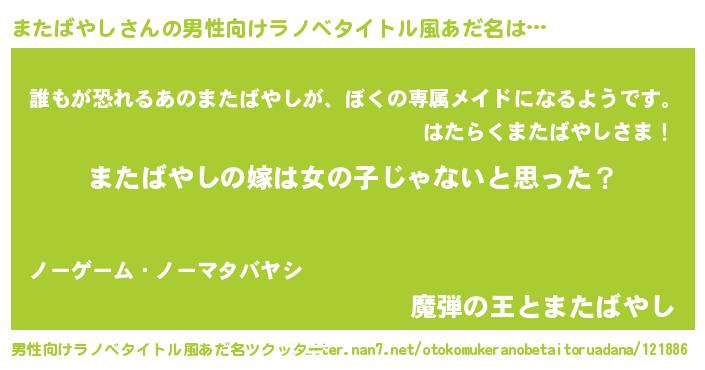 | 女子向けラノベタイトル風あだ名 | 『またばやし様がみてる』 |