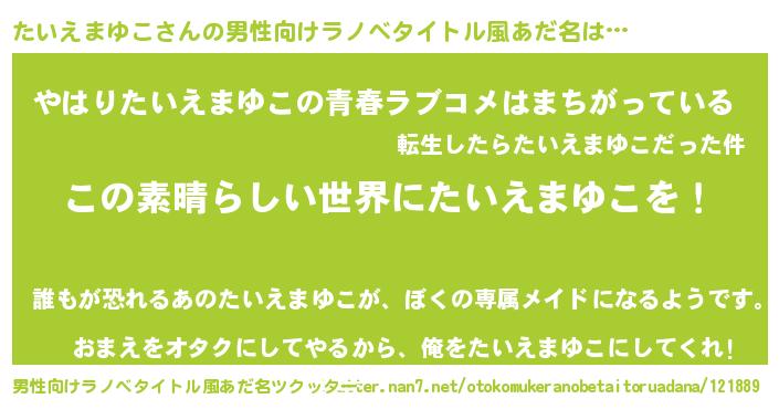 | 意味不明あだ名 | 『住所不定無職たいえまゆこ(39歳)』 |