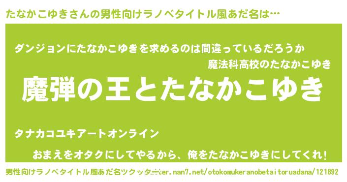| 女子向けラノベタイトル風あだ名 | 『たなかこゆきが死なない童話 林檎のたなかこゆきの診療簿』 |