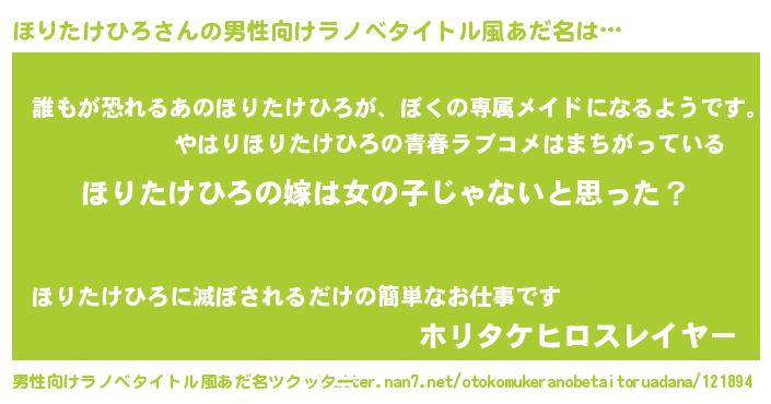 | 女子向けラノベタイトル風あだ名 | 『ほりたけひろ様がみてる』 |