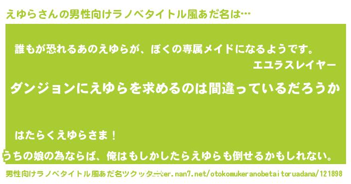| 女子向けラノベタイトル風あだ名 | 『えゆらは平凡を望む』『えゆらの婚約者』 |