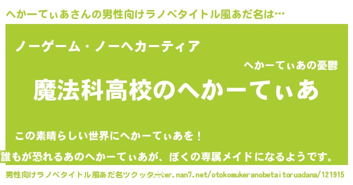 | 意味不明あだ名 | 『自称へかーてぃあ』 |