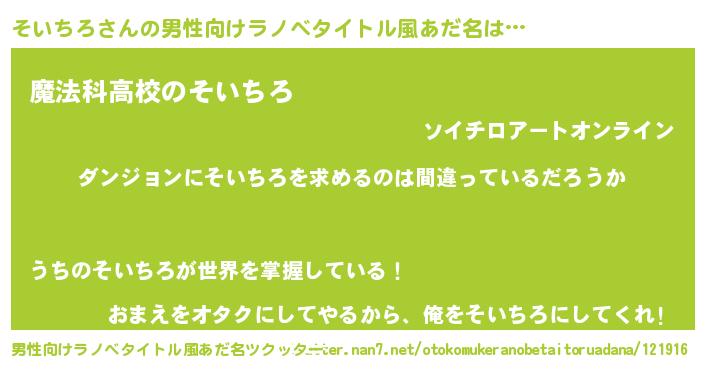 そいちろさんの男性向けラノベタイトル風あだ名をツクッター!