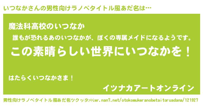 | 意味不明あだ名 | 『住所不定無職いつなか(56歳)』 |