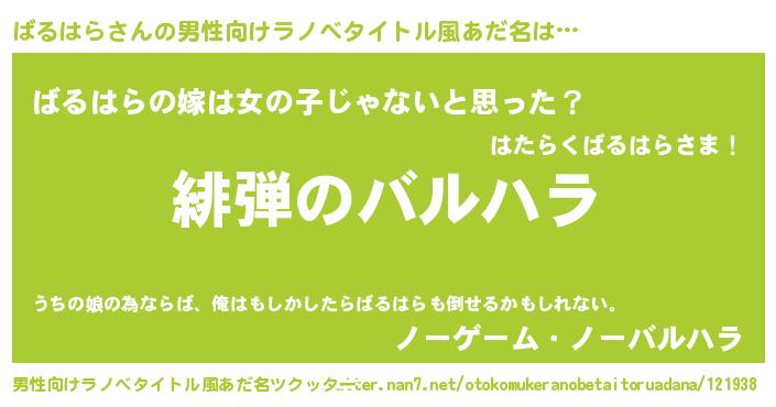 | 胡散臭い通販商品みたいなあだ名 | 『信頼と実績のネックレス…その名も「ばるはら」』 |