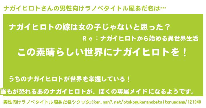 | 女子向けラノベタイトル風あだ名 | 『悪役ナガイヒロトに転生したようですが、知った事ではありません』 |