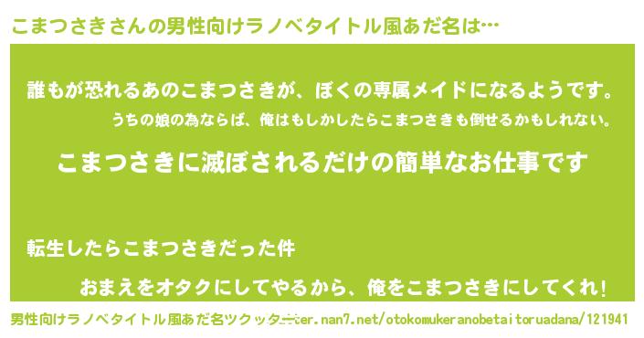 | 胡散臭い通販商品みたいなあだ名 | 『来世でも幸せになれる水素水…その名も「こまつさき」』 |