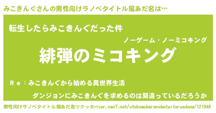 | ヒーロー風カッコイイあだ名 | 『暗黒騎士ミコ』『愛の使者みこきんぐ』 |