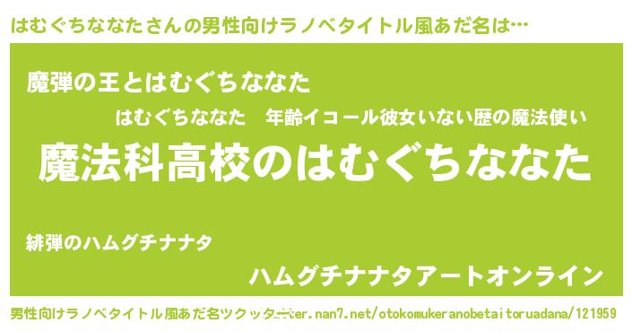 | 女子向けラノベタイトル風あだ名 | 『はむぐちななたなんてお断りですっ。』 |