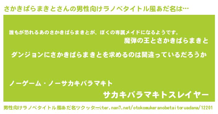 | 意味不明あだ名 | 『とにかく怪しいさかきばらまきと』 |